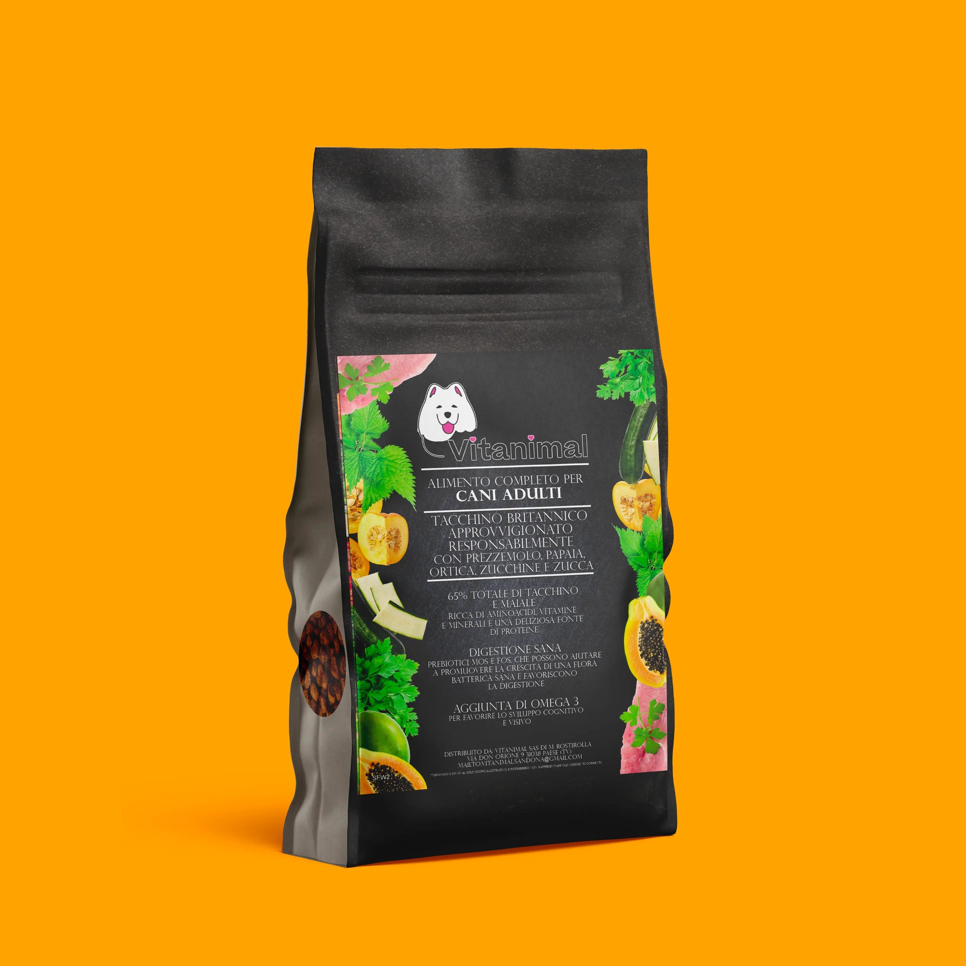 Formula completa con 65% tacchino britannico, proteina magra e digeribile. Arricchita con prezzemolo, papaya, ortica, zucchine e zucca, ingredienti che supportano digestione e benessere generale. I prebiotici favoriscono l’equilibrio intestinale, mentre gli Omega-3 aiutano cute e pelo. Perfetta per cani adulti che richiedono un’alimentazione leggera ma nutriente.